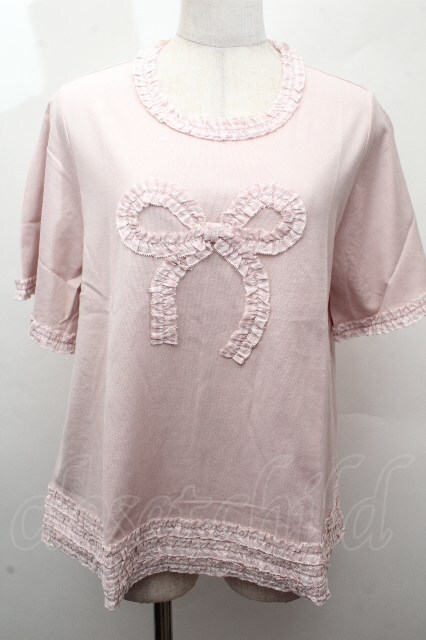 PINK HOUSE / ドビーギンガムフリルリボンモチーフ付きカットソー ピンク S-26-04-20-1026-LO-TO-HR-ZS [2100020000031462-S-26-04-20-1026-LO-TO-HR-ZS]