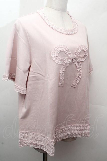 PINK HOUSE / ドビーギンガムフリルリボンモチーフ付きカットソー ピンク S-26-04-20-1026-LO-TO-HR-ZS