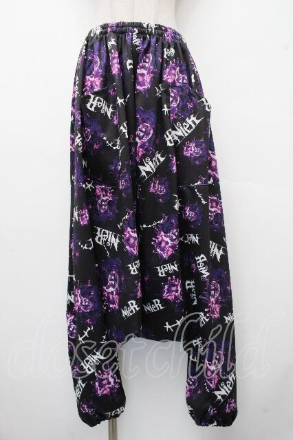 NieR Clothing / 転写プリントサルエルパンツ 紫 S-26-04-20-1058-PU-PA-HR-ZS