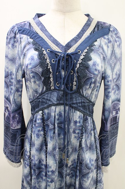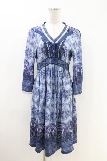 OZZ ANGELO / 宗教画プリントワンピース ブルー H-26-04-25-1009-OO-OP-KB-ZH