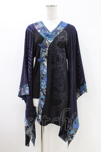 Qutie Frash / 着物袖チュニック 青×黒 H-26-04-25-1027-QU-TO-AK-ZH