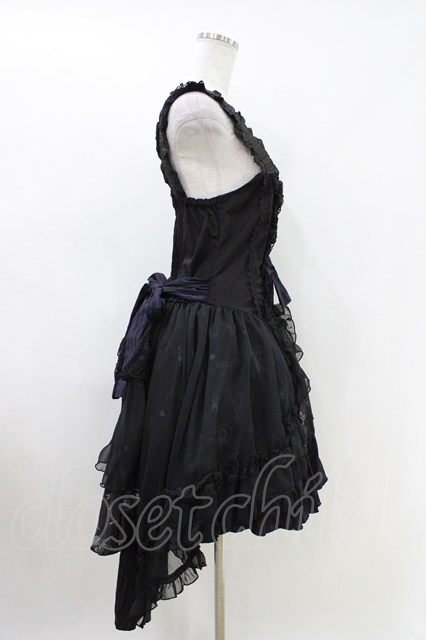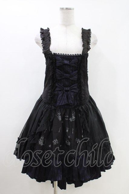 FRILL / ストライプ切替ジャンパースカート 黒 H-26-04-25-1004-HN-SK-AK-ZH