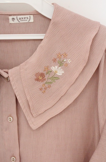 axes femme / 刺繍チュニックブラウス ピンク O-26-04-20-1002-AX-TO-IG-OS
