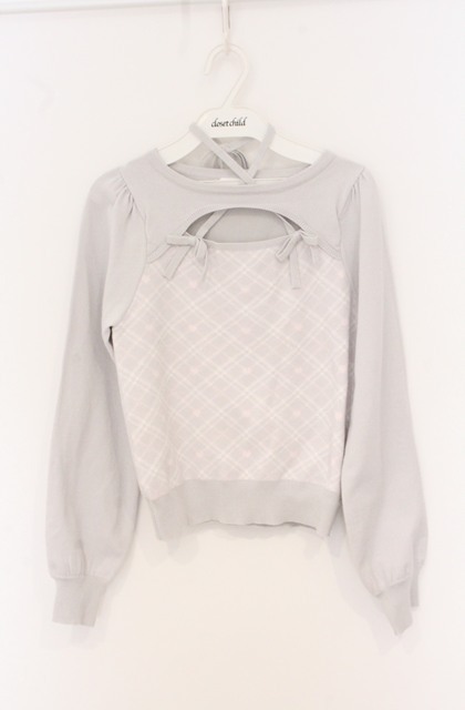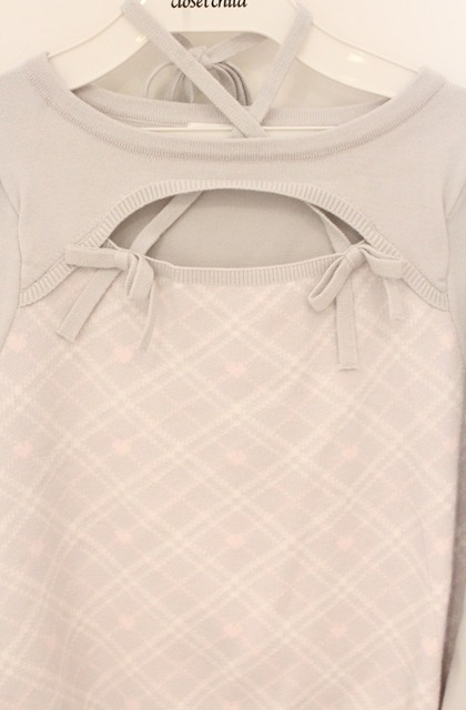evelyn / ダブルリボンチェックニット F ピンク O-26-04-20-1022-LO-TO-IG-OS