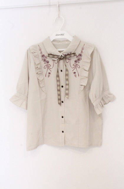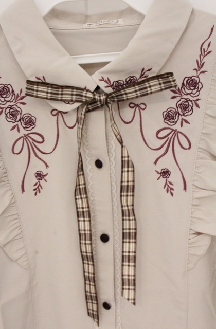 axes femme / リボン付ローズ刺繍ブラウス M ベージュ O-26-04-20-1086-AX-TO-IG-OS