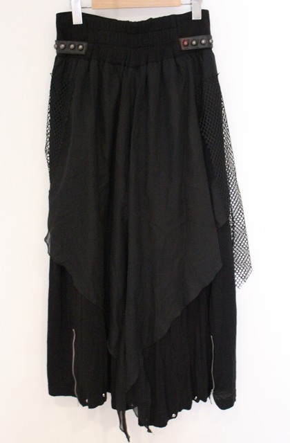 | 生地毛羽立ち、ウエストパーツ欠品、シフォンに装飾レザーの赤い染料付着あり/ リサイクル品の為、記載の無い若干のシミ・汚れ等がある場合がございます。あらかじめご了承の上ご注文ください。詳細はこちら | |||||||||