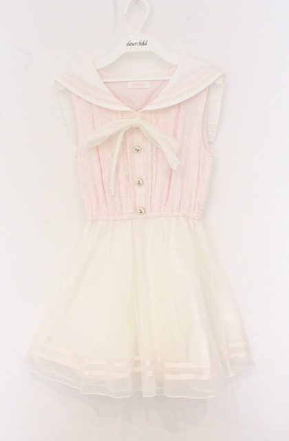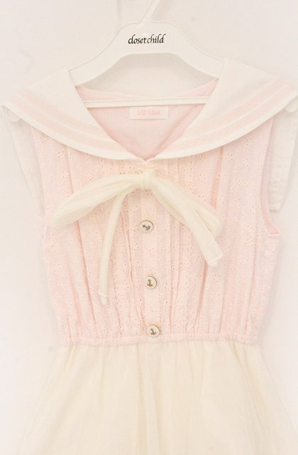 LIZ LISA / 刺繍入りセーラーワンピース 0 シロ×ピンク O-26-04-20-1008-LO-OP-OW-OS