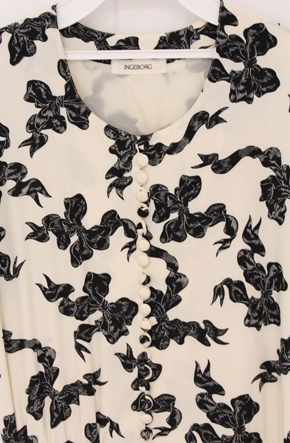 INGEBORG / リボン総柄プリーツワンピース アイボリー O-26-04-20-1052-LO-OP-IG-OS [2110060000001901-O-26-04-20-1052-LO-OP-IG-OS]