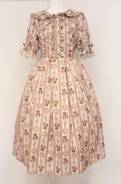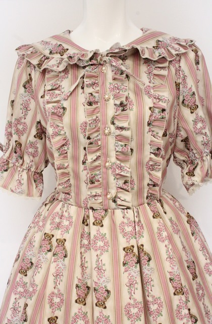 axes femme kawaii / RosyBear柄ワンピース M ピンク O-26-04-20-1079-AX-OP-OW-OS