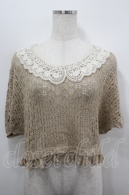 axes femme / 衿レースニット M ベージュ I-26-04-19-028-AX-TO-SA-ZI