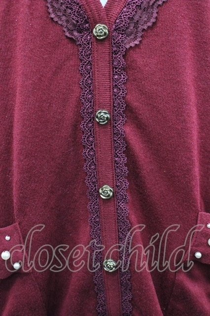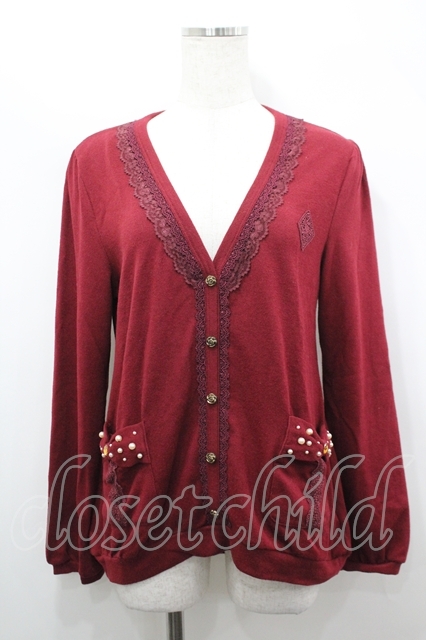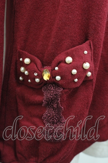 axes femme / ビジューリボンポケットカーデ ボルドー I-26-04-19-031-AX-TO-SA-ZI