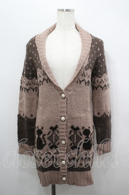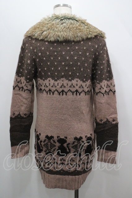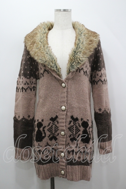 axes femme / ファー襟ロングニットカーディガン ピンクブラウン I-26-04-19-035-AX-TO-SA-ZI [2100060000052213-I-26-04-19-035-AX-TO-SA-ZI]
