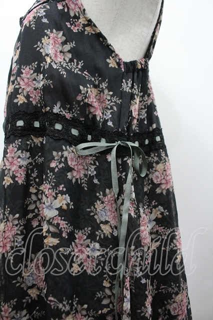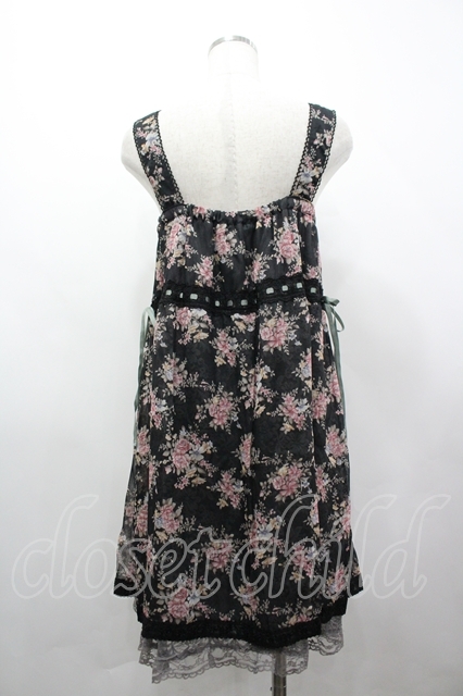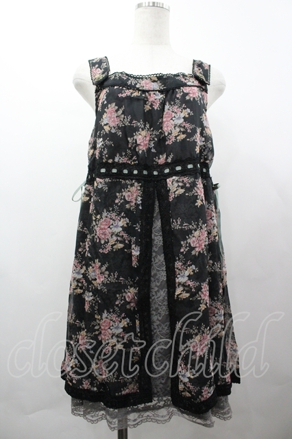 axes femme / フラワーブーケシフォンプリントジャンパースカート M 黒 I-26-04-19-079-AX-OP-TE-ZI