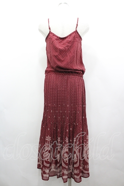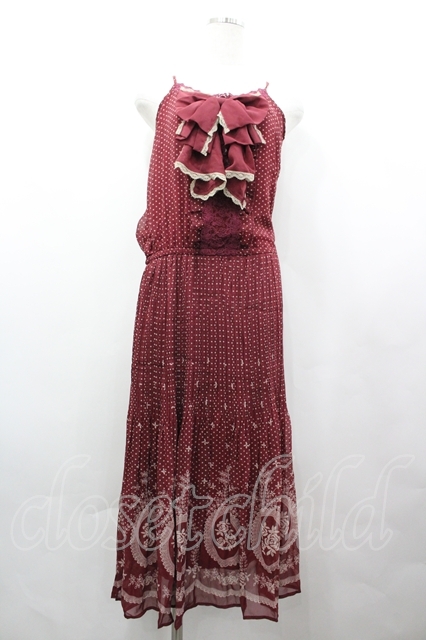 axes femme / パネル柄プリーツマキシOP M ワイン I-26-04-19-081-AX-BL-TE-ZI
