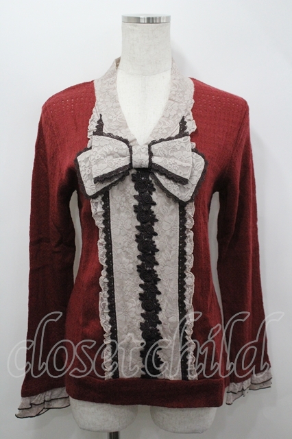 axes femme / ニットソーリボンタイPO M アカ I-26-04-19-030-AX-TO-SA-ZI [2100060000052202-I-26-04-19-030-AX-TO-SA-ZI]