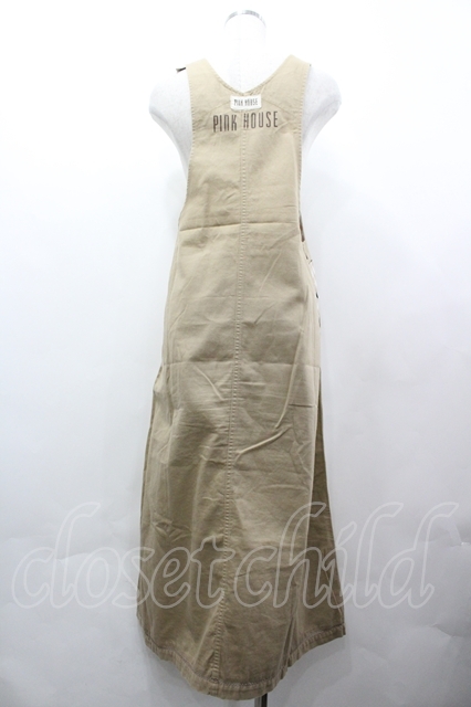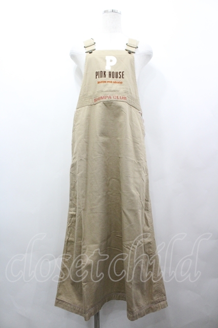 PINK HOUSE / Pプリント&ロゴ刺繍オーバーオールジャンパースカート ベージュ I-26-04-19-098-LO-OP-SA-ZI [2100060000054825-I-26-04-19-098-LO-OP-SA-ZI]