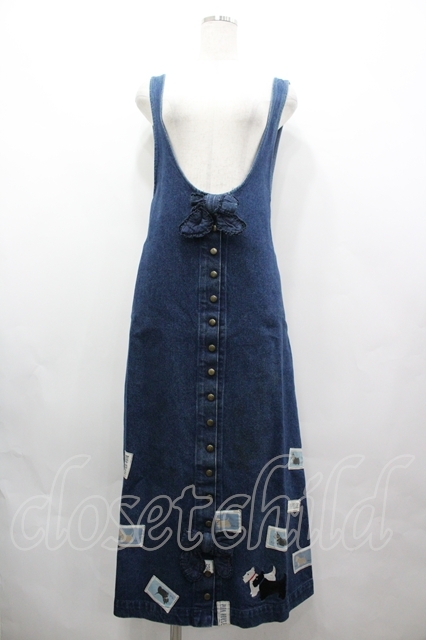 PINK HOUSE / テリア刺繍&ワッペンジャンパースカート インディゴ I-26-04-19-097-LO-OP-SA-ZI [2100060000054826-I-26-04-19-097-LO-OP-SA-ZI]