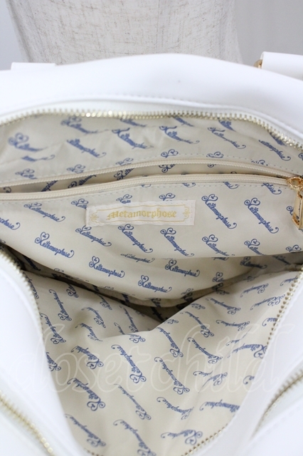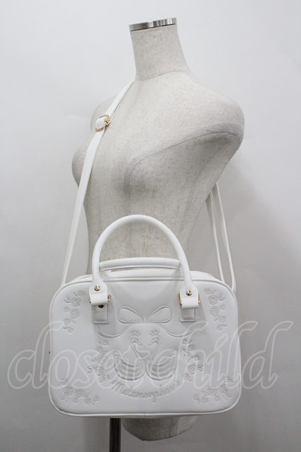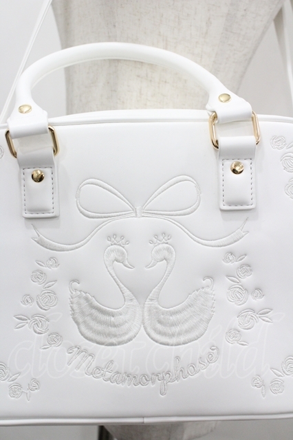 metamorphose / スワン刺繍入りWファスナーBAG 白 I-26-04-19-119-ME-BG-SA-ZI