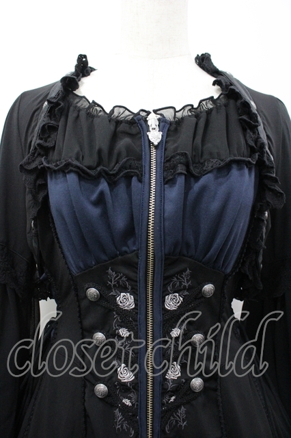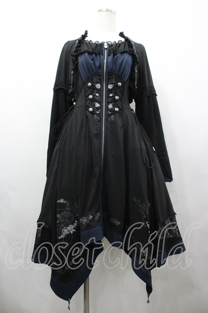 Ozz oneste / 薔薇刺繍ZIPワンピース 黒×青 I-26-04-19-088-OO-OP-TE-ZI [2100060000054707-I-26-04-19-088-OO-OP-TE-ZI]