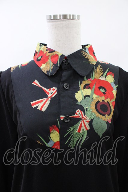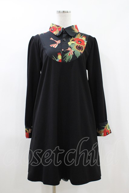 Despair / 和柄切り替えトラペーズワンピース ブラック H-26-04-26-1013-GO-OP-KB-ZH