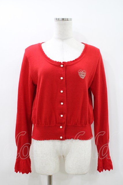Emily Temple cute / ロゴ刺繍ニットカーディガン レッド H-26-04-26-1026-ET-TO-KB-ZH