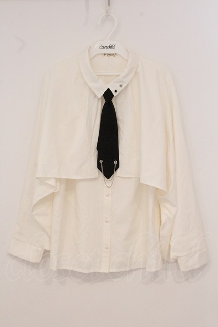 axes femme / タイ付オーバーケープ風ブラウス F オフシロ×クロ O-26-04-21-093-AX-BL-IG-OS [2100080000081166-O-26-04-21-093-AX-BL-IG-OS]
