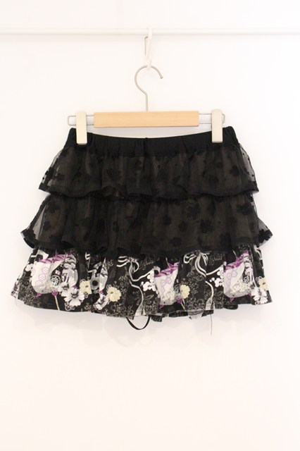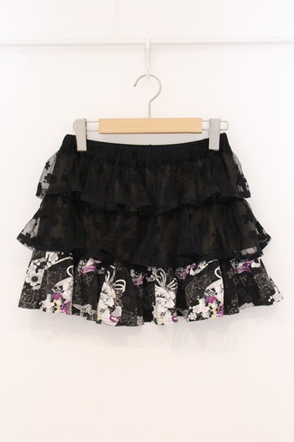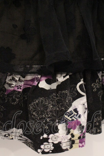 gouk / 透かしティアード和柄カットスカート ブラック×パープル O-26-04-21-038-GO-SK-IG-OS [2100080000081048-O-26-04-21-038-GO-SK-IG-OS]