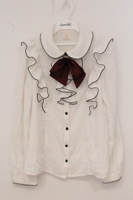 Secret Honey / タイ付きラッフルフリルブラウス シロ×アカ×クロ O-26-04-21-092-CA-BL-IG-OS