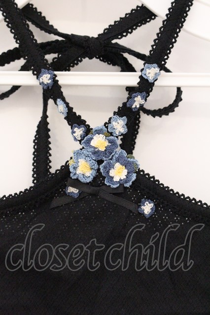 PINK HOUSE / フラワーモチーフホルターキャミソール L ネイビー O-26-04-21-033-LO-TO-IG-OS