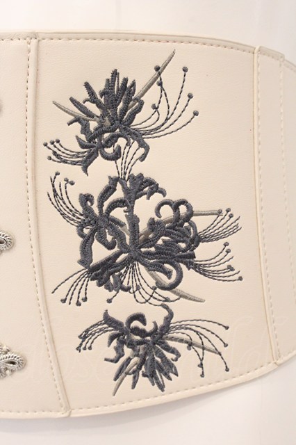 axes femme / 彼岸花刺繍コルセットベルト シロ O-26-04-21-095-AX-TO-IG-OS
