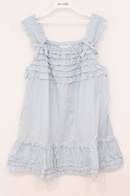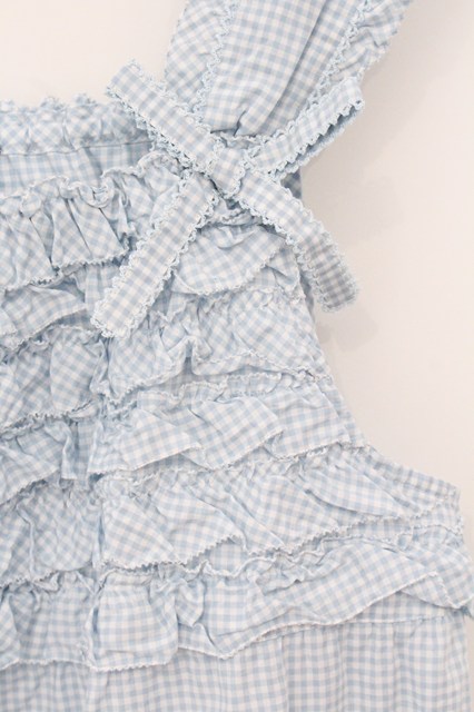 PINK HOUSE / ギンガムチェックフリルノースリーブブラウス サックス O-26-04-21-035-LO-BL-IG-OS