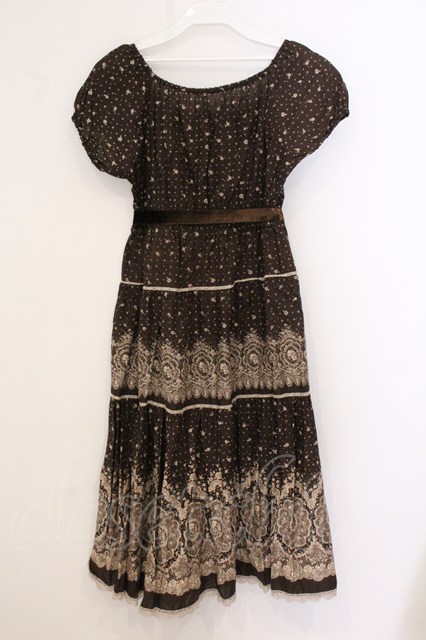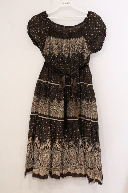PINK HOUSE / レースプリントパフワンピース ブラウン O-26-04-21-023-LO-OP-IG-OS