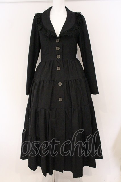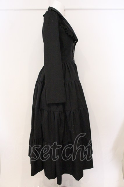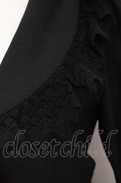 BPN / トーションレース配色襟ロングフレアージャケット M ブラック O-26-04-21-086-GO-JA-IG-OS