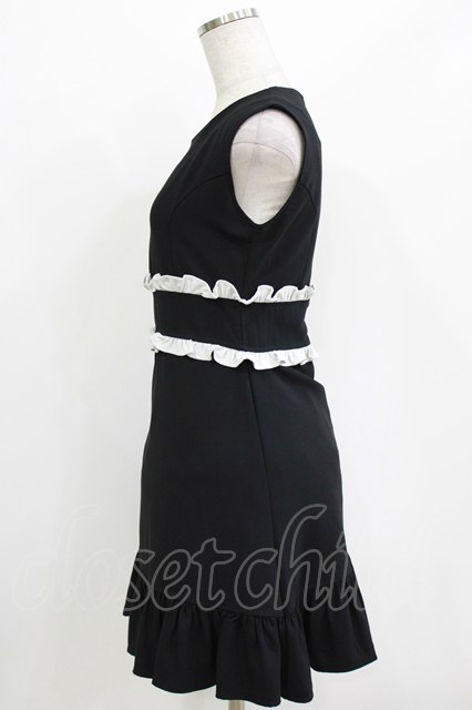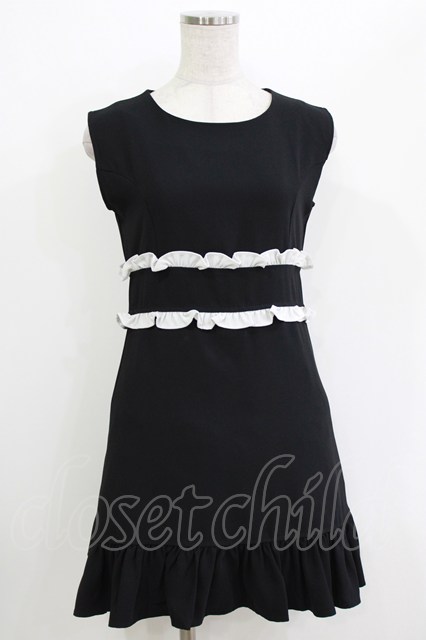 evelyn / 配色フリルワンピース Free ブラック H-26-04-26-020-LO-OP-NS-ZH