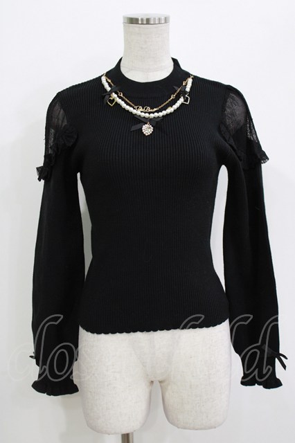 LIZ LISA / ネックレス付リブニットトップス Free ブラック H-26-04-26-042-LO-TO-NS-ZH