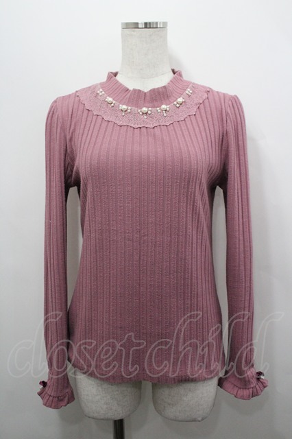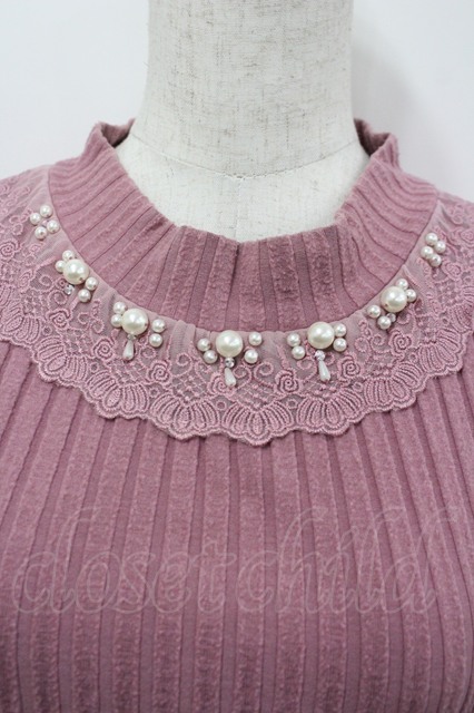axes femme / パールデザインワイドリブトップス ピンク I-26-04-20-028-AX-TO-SA-ZI