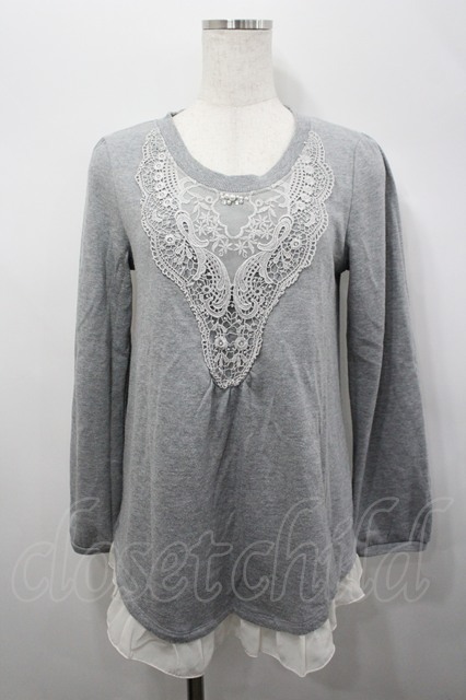 axes femme / フロントレースデザイントップス グレー I-26-04-20-013-AX-TO-SA-ZI