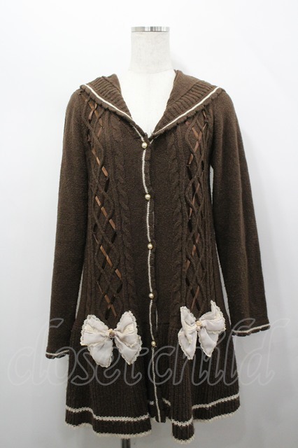 axes femme / ビッグリボンニットカーデ ブラウン I-26-04-20-030-AX-TO-SA-ZI
