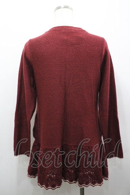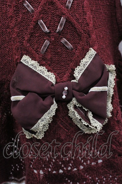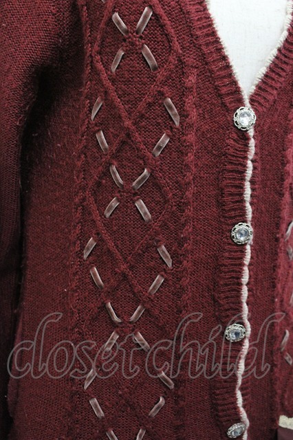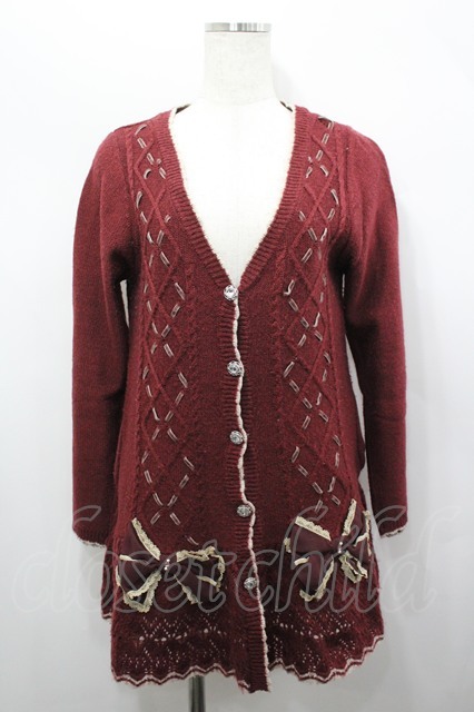 axes femme / レースアップリボンロングカーディガン ボルドー I-26-04-20-031-AX-TO-SA-ZI