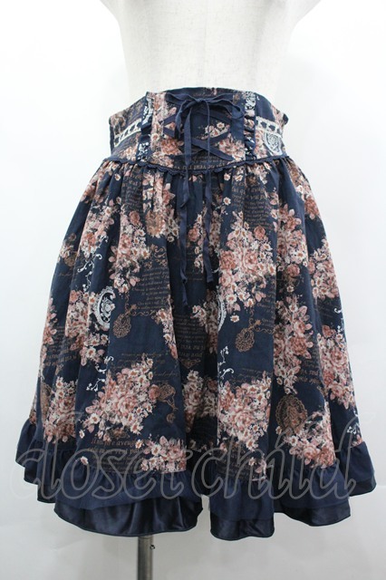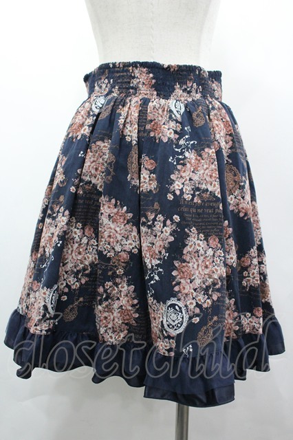 axes femme / メッセージ×花柄スカート M ネイビー I-26-04-20-105-AX-SK-SA-ZI