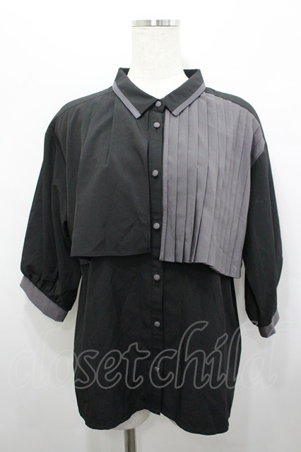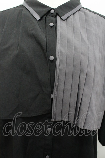 axes femme / プリーツ使バイカラーブラウス ブラック I-26-04-20-009-AX-BL-SA-ZI [2100060000038711-I-26-04-20-009-AX-BL-SA-ZI]