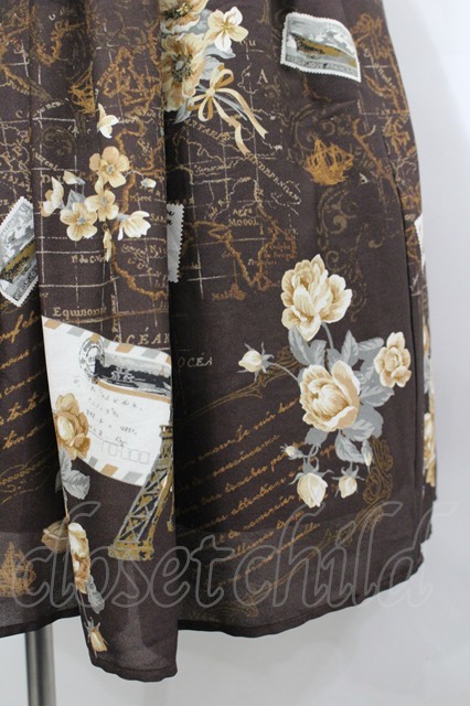 axes femme / パリトラベル柄ワンピース M ブラウン I-26-04-20-080-AX-OP-SA-ZI