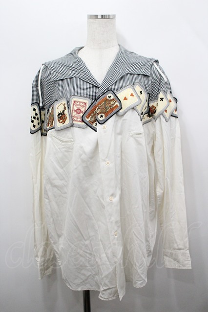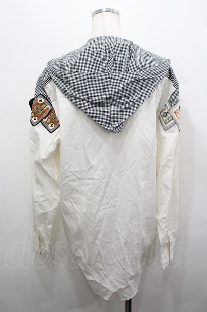 Karl Helmut / トランプワッペン&ギンガムチェックフードシャツ 白X黒 I-26-04-20-049-EL-BL-SA-ZI
