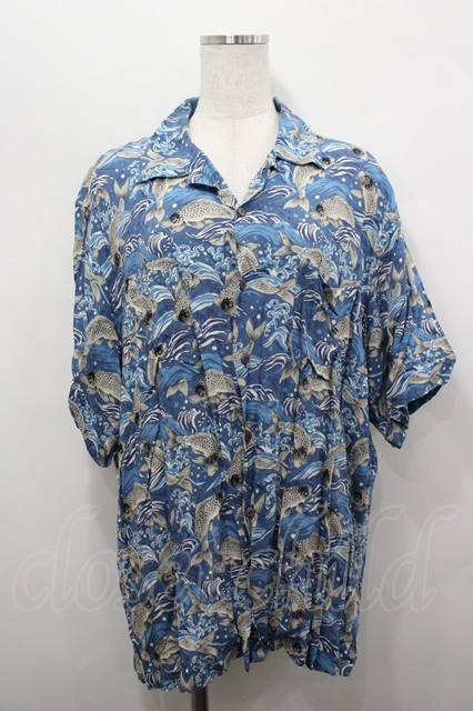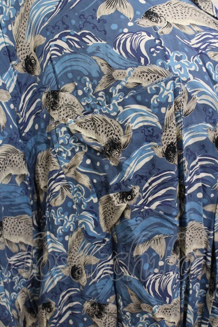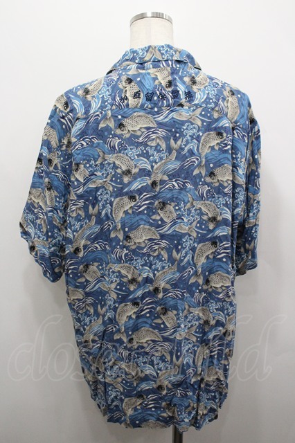 Karl Helmut / 鯉柄半袖シャツ M 青 I-26-04-20-045-EL-BL-SA-ZI