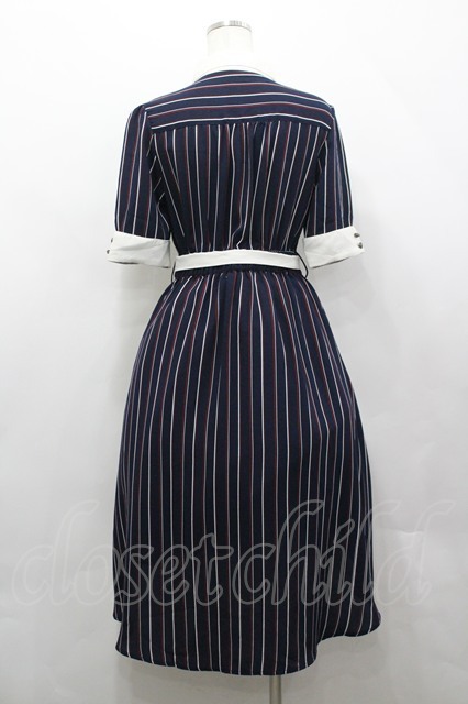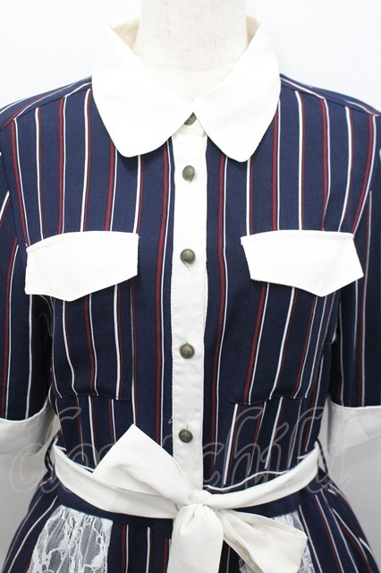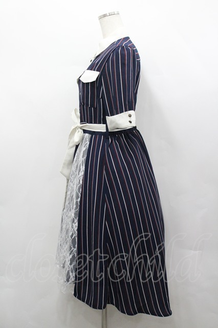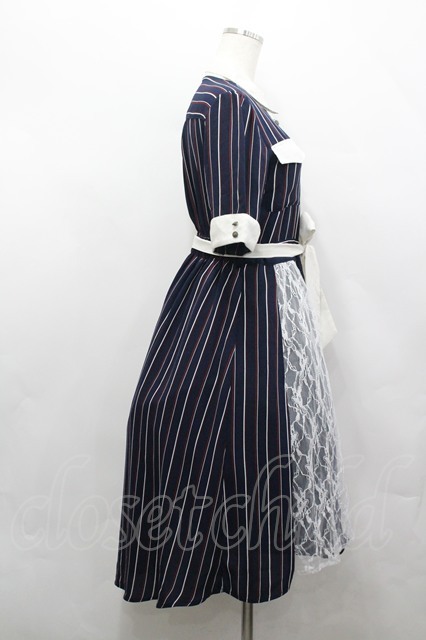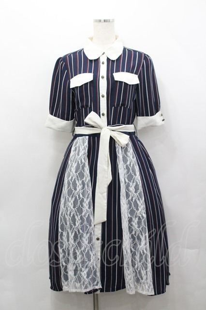 axes femme / ストライプ柄レースワンピース 青X白 I-26-04-20-081-AX-OP-SA-ZI