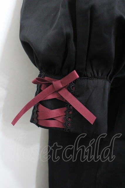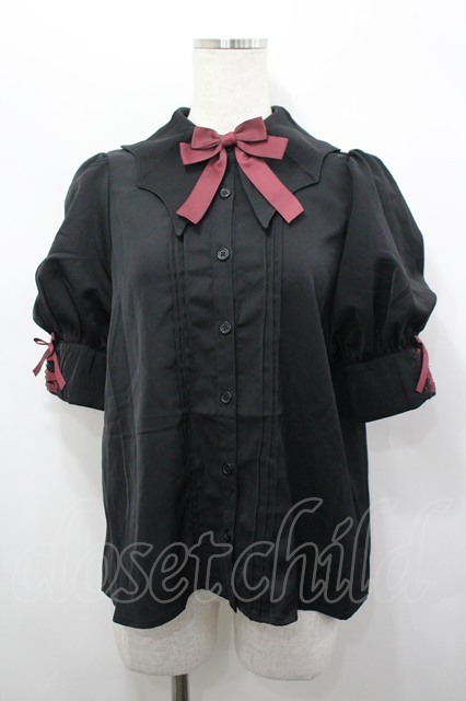 Chalmiere / コウモリ衿半袖ブラウス M 黒Xボルドー I-26-04-20-033-0-BL-SA-ZI [2100060000043437-I-26-04-20-033-0-BL-SA-ZI]