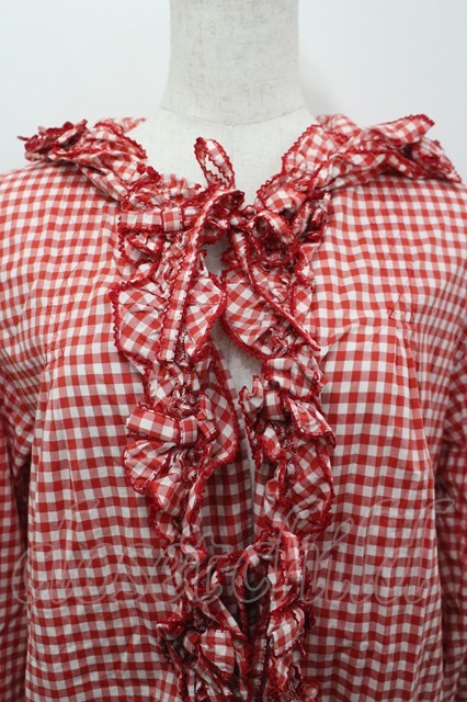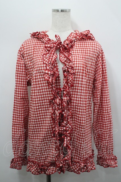 PINK HOUSE / ギンガムチェックオーバーブラウス レッド I-26-04-20-040-LO-BL-SA-ZI [2100060000049695-I-26-04-20-040-LO-BL-SA-ZI]