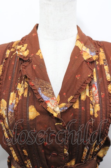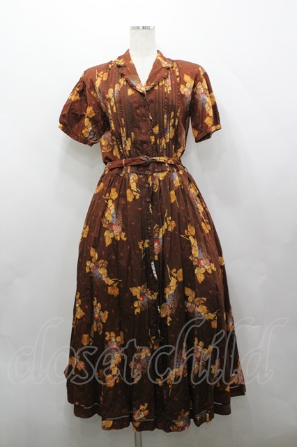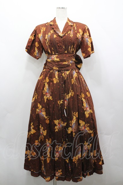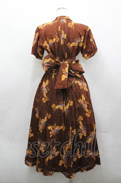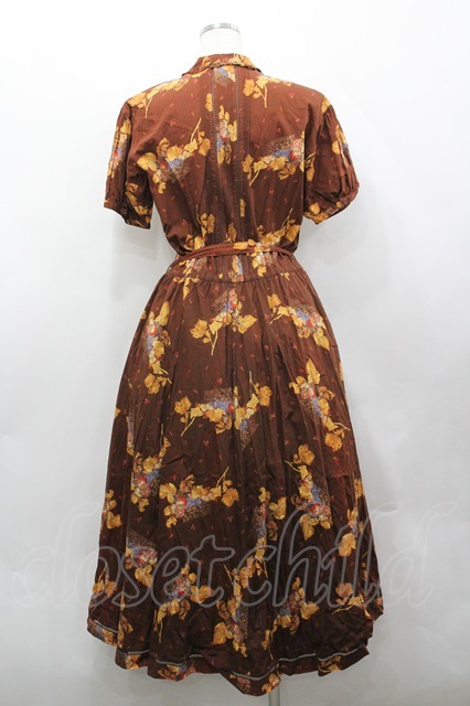 PINK HOUSE / フルーツ籠プリントサッシュベルト付きワンピース ブラウン I-26-04-20-089-LO-OP-SA-ZI