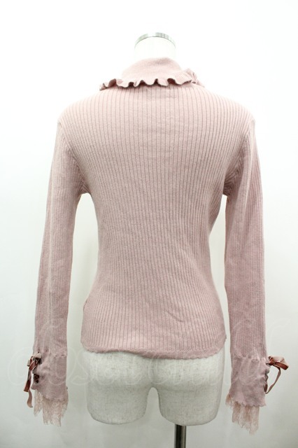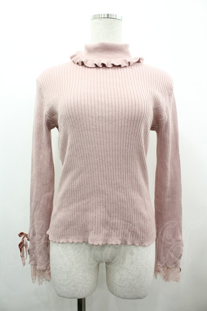 axes femme POETIQUE / ベロアリボンレースアッフプハイネックニット ピンク I-26-04-21-005-AX-TO-SA-ZI
