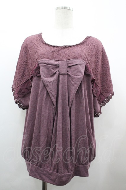 axes femme / フロントリボンレース切り替え半袖カットソー M パープル I-26-04-21-013-AX-TO-SA-ZI [2100060000052184-I-26-04-21-013-AX-TO-SA-ZI]